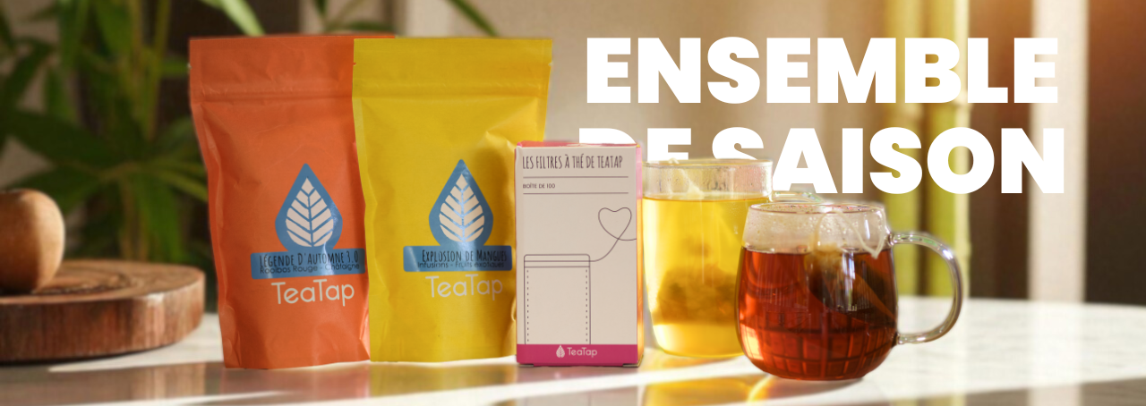 Pour vous souhaiter la bienvenue chez TeaTap, nous vous offrons notre Ensemble de Saison dès que vous effectuez un achat de 20 € ou plus avec le code KDOBIENVENUE. Profitez de cette offre pour découvrir une sélection de nos thés les plus appréciés ! (uniquement sur votre 1ère commande, offre non cumulable)